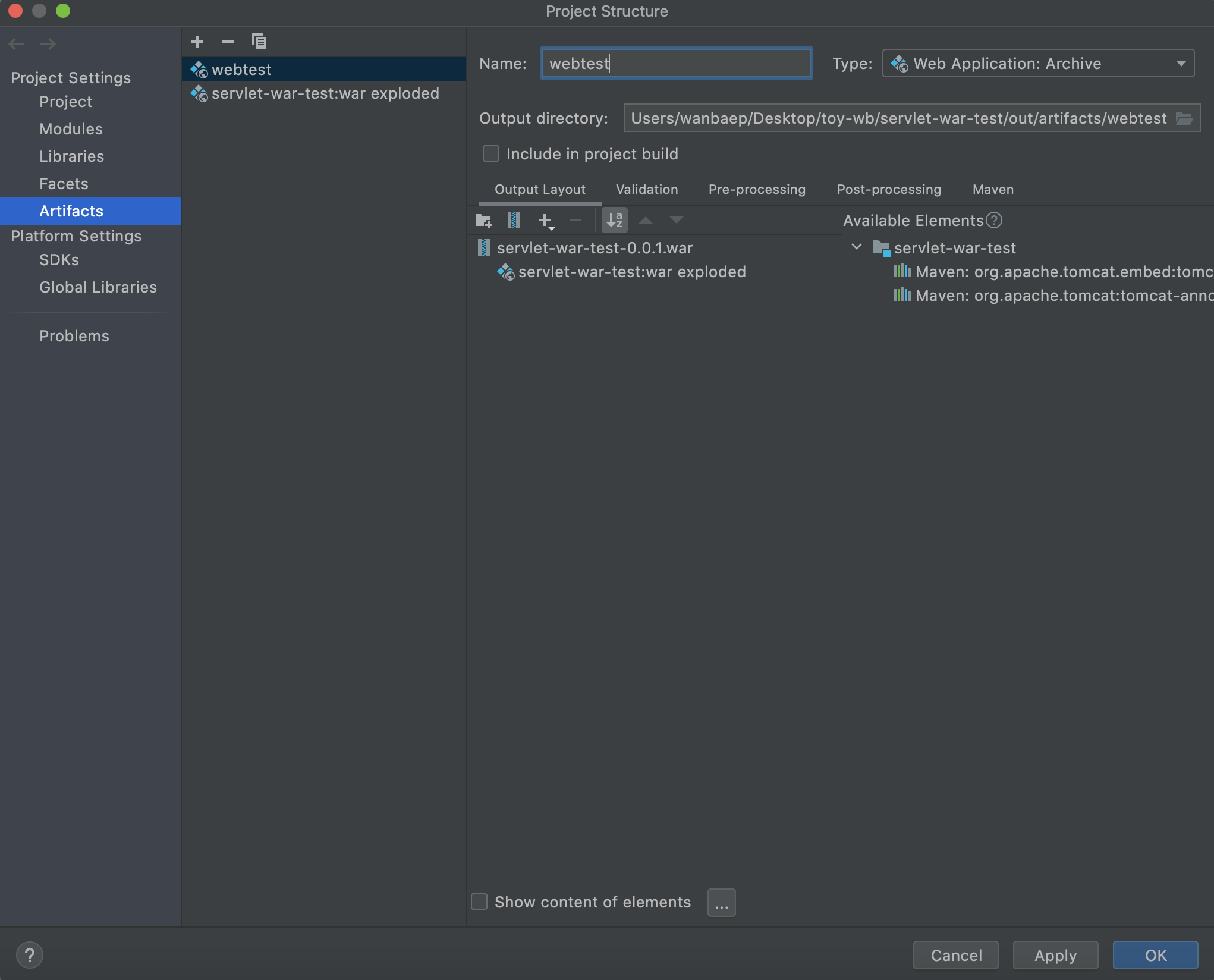 추가한 Artifacts를 빌드한다.