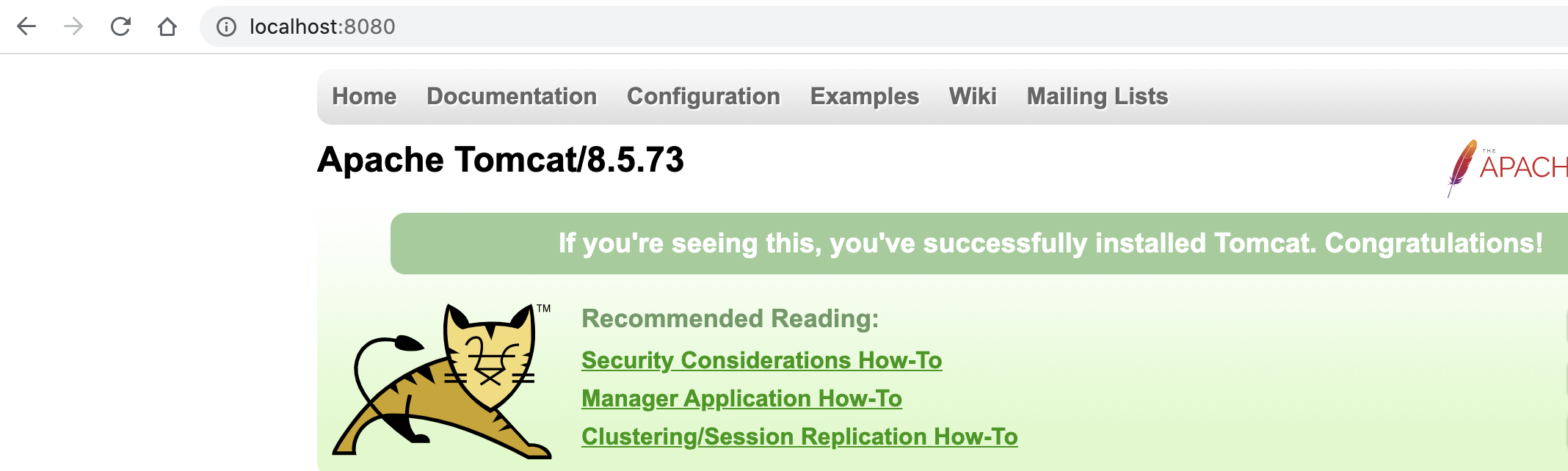 localhost:8080 으로 접속해서 tomcat이 정상 실행되었는지 확인한다. (기본 포트가 8080으로 설정되어있다.)