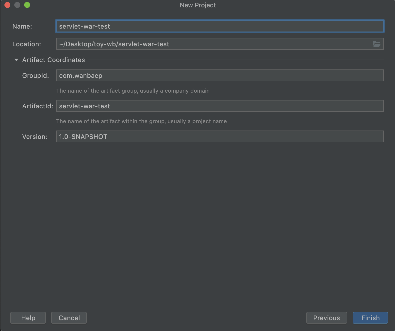 프로젝트 정보 입력 후 Finish